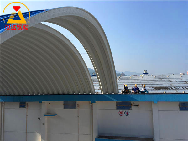 在拱腳和拱形屋頂中央兩側安裝角鋼支撐,保障結構穩定。