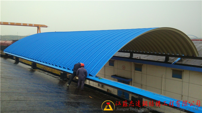 設計上,該拱形屋頂結構簡潔且合理,既能滿足堆放設備的空間需求,也能確保人員通行的便利性。通過合理的拱形曲線分布,屋頂的受力更加均勻,提升整體結構的安全性能。