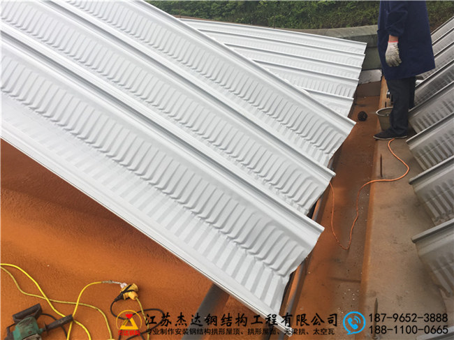 設備出板環節是施工中的重要環節,所有部件均經過嚴格檢測。組裝過程采用科學流程,保證瓦片精準拼接,提升整體結構穩定性。無梁拱設計提升了屋頂的承重能力,且減輕自重,利于長期使用。