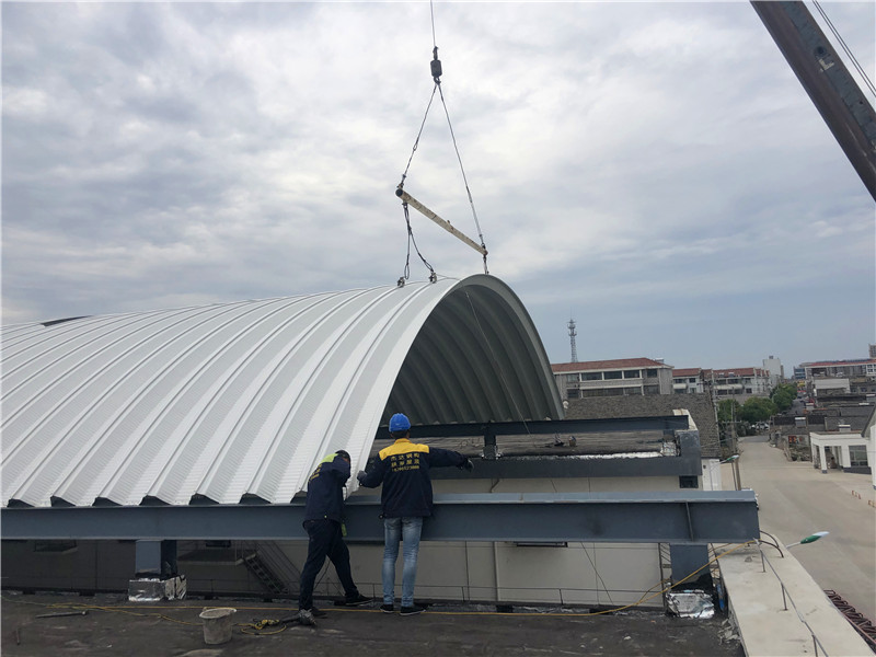 一是拱形結構帶來更強的承壓性,適應多變天氣條件;二是彩鋼材質表面光潔,耐久性出色;三是施工過程標準化、機械化程度高,施工效率優良;四是整體視覺風格統一,具備良好的倉儲密封效果與美觀度。