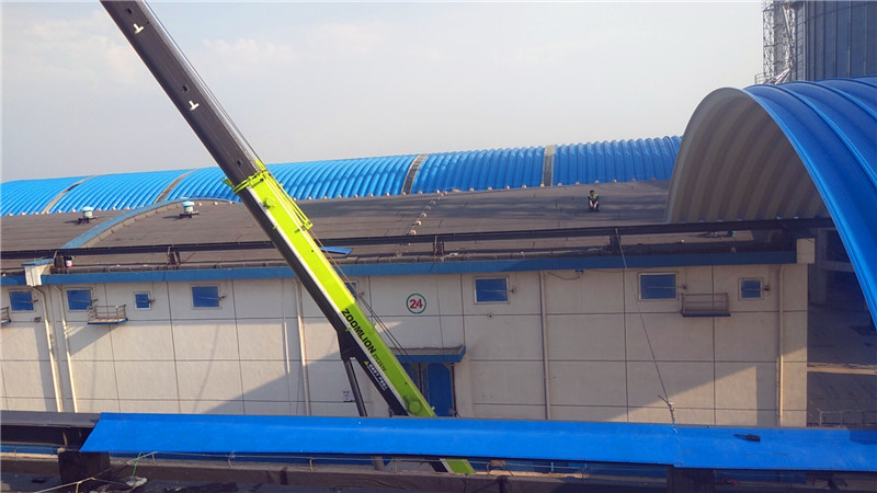 施工過程中,杰達鋼構使用第五號拱形屋頂壓型設備連夜趕赴施工現場,確保施工進度。