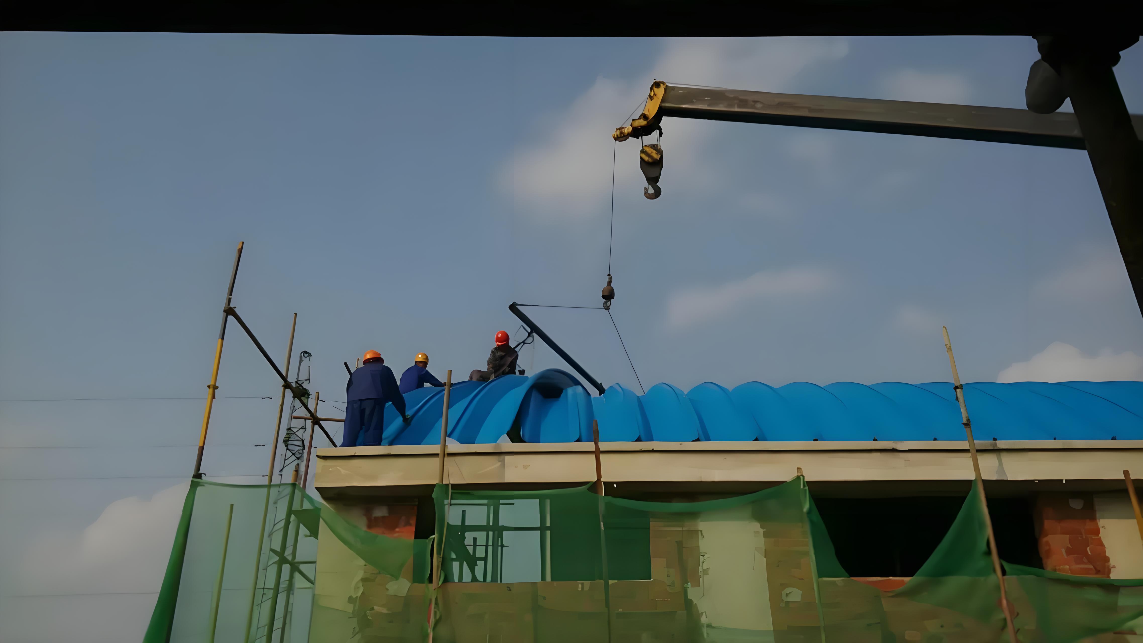 本次金屬波紋拱型屋頂工程中,江蘇杰達(dá)鋼結(jié)構(gòu)工程有限公司采用上海寶鋼高強(qiáng)彩鋼板,板材寬度914毫米,厚度0.8毫米,顏色為海藍(lán)色。屋頂結(jié)構(gòu)采用914-610無(wú)梁拱壓制技術(shù),確保施工質(zhì)量與結(jié)構(gòu)穩(wěn)固,施工過(guò)程中配合高效的吊裝勞務(wù),保障工程順利完成。