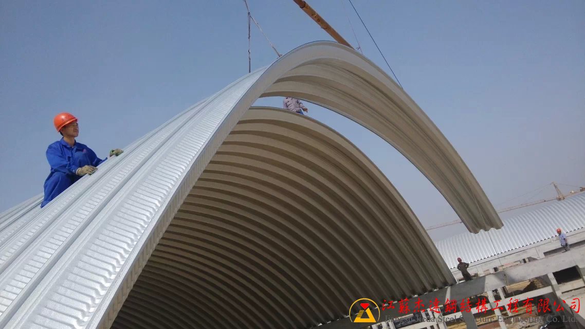 本次拱形屋頂工程施工面積達(dá)8萬多平方米,施工單位江蘇杰達(dá)鋼結(jié)構(gòu)工程有限公司憑借豐富的鋼結(jié)構(gòu)施工經(jīng)驗(yàn),采用科學(xué)施工方案,確保項(xiàng)目質(zhì)量和進(jìn)度。施工中嚴(yán)格執(zhí)行安全管理制度,加強(qiáng)現(xiàn)場監(jiān)控,保障施工安全無事故。